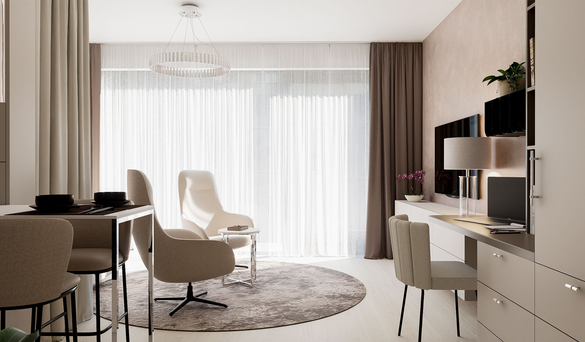 Výsledkem je garsonka, která nabízí vše, co moderní žena potřebuje – funkčnost, styl a pohodlí v jednom.